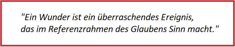 Ein Wunder ist ein überraschendes Ereignis, das im Referenzrahmen des Glaubens Sinn macht.